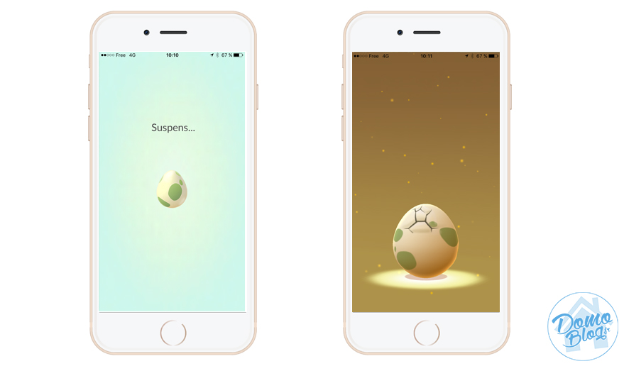 Les pokéstops donne également des oeufs de temps à autres, ces oeufs contiennent des pokemons, ils font 2, 5 ou 10km, il faut alors marcher pour les faire éclore et découvrir ce qu’ils contiennent. La encore, le jeu force le joueur à se promener pour mener ses oeufs à maturité. Et comme c’est bien fait, ne sont comptabilisés que les km fait en dessous d’une certaine vitesse. Ne pensez pas alors à prendre la voiture pour faire éclore vos oeufs, ca ne fonctionnera pas !