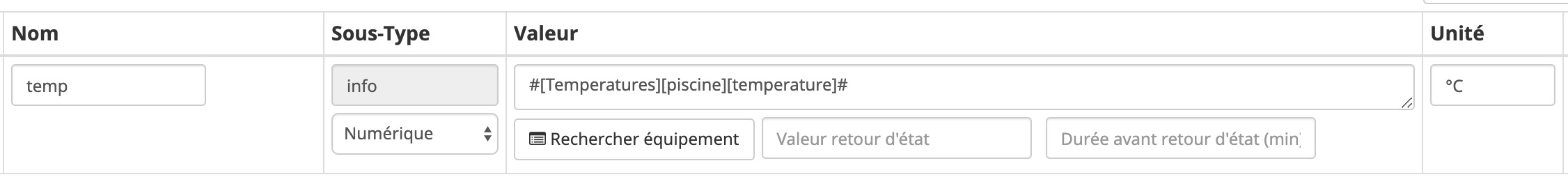 2. Il faut ensuite ajouter une nouvelle info virtuelle, puis lui donner la valeur de la sonde de température de la piscine.